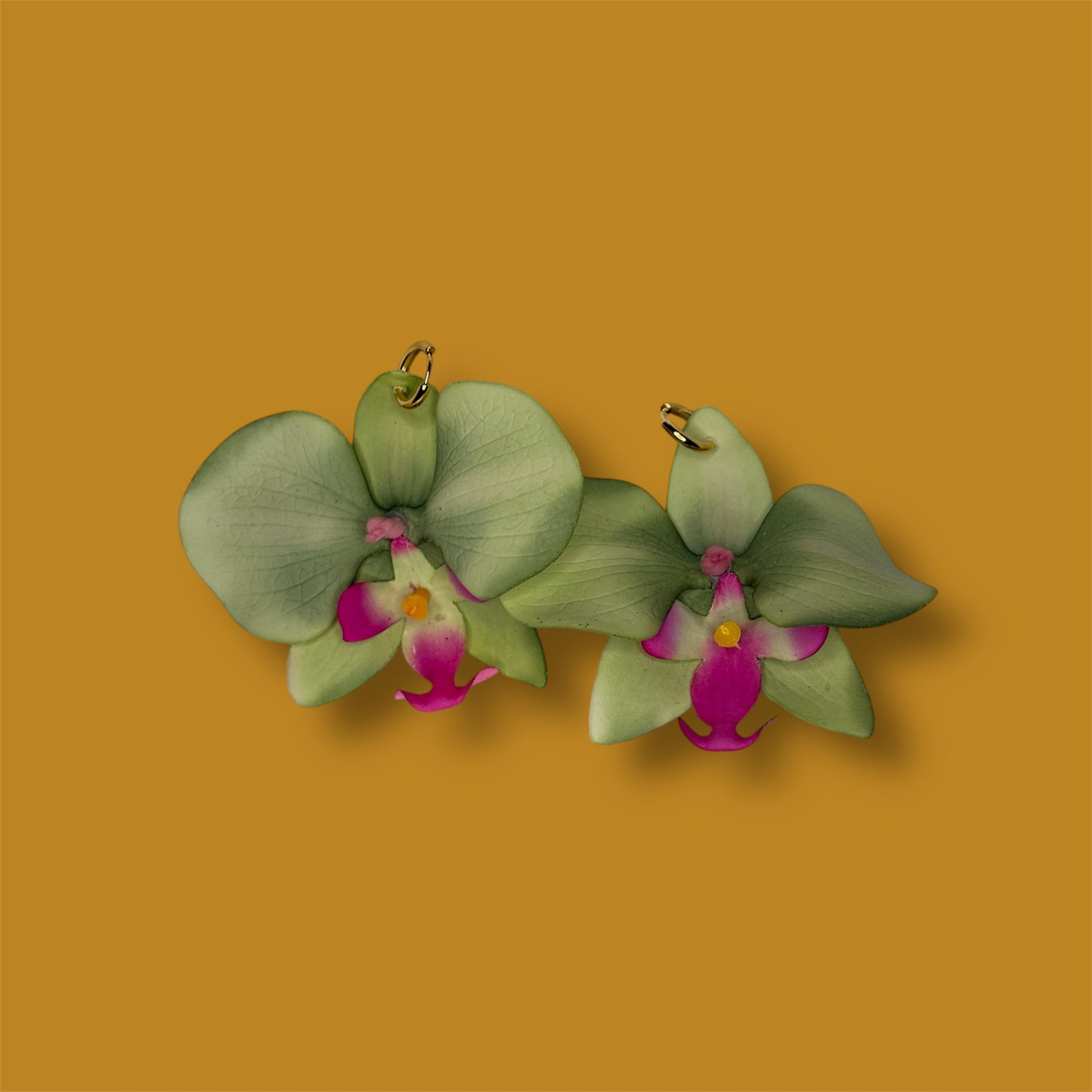 Artificial orchids. Lightweight. Hypoallergenic with 14k gold backs.